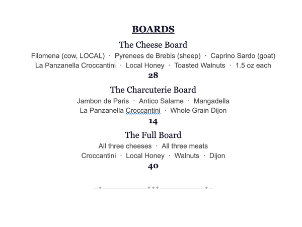 Rotating wines from around the globe.